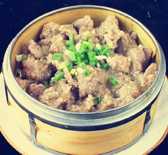粉蒸肉以肉為主料,采用米粉和其他調(diào)味料制作而成。粉蒸肉糯而清香,酥而爽口,有牛肉、排骨、豬舌、牛肚、肥腸、羊肉等不同選擇,味道也根據(jù)個人喜好在辣椒碟中添加醋、糖、麻油等調(diào)味料,粉蒸肉味道鮮美、口感松軟、回味無窮。