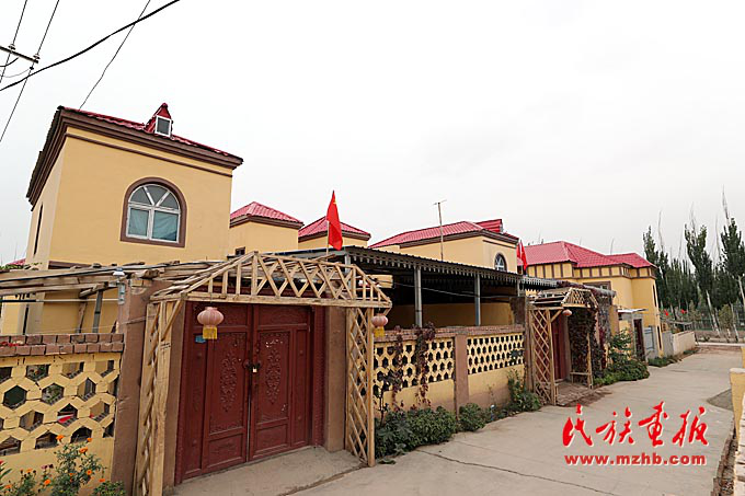 艾日克博依新村家家戶(hù)戶(hù)新居門(mén)上都掛著國(guó)旗。