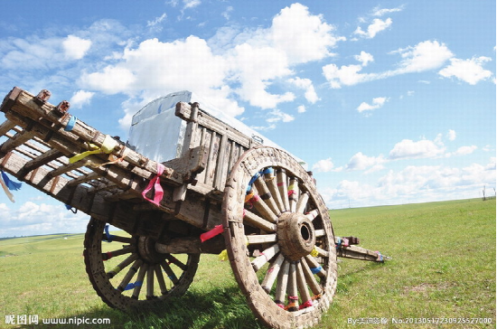 蒙古族牧民常用的一種木制大輪車。多用樺木或柳木制做。車輪高約1米,車身重約百斤,可載重300—450公斤,日行約30余公里。每車用一頭牛來拉,一人可駕馭數(shù)輛,適于在草原、沙漠、雪地等行走。亦可將數(shù)十輛勒勒車首尾相接形成近百米長的車隊(duì),十分壯觀,也形成了草原上特有的風(fēng)情?,F(xiàn)在已多被膠皮鐵輪的軸承車所替代。另外還有一種“蒙古轎車”,是一種在勒勒車基礎(chǔ)上經(jīng)過改造專門乘人的車。其與勒勒車不同之處在于車體上有用柳條子彎曲后扎成的車棚,棚子的外面用毛氈包圍,形成一個(gè)既擋陽光,又擋風(fēng)雨,防曬御寒的帳篷。