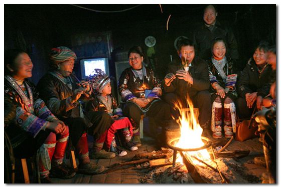 坐在火塘邊,不能用腳踩燒火的柴蔸,苗家認(rèn)為踩柴蔸意味踩著了老人,對老人不尊重,是很忌諱的。需要起身走動(dòng)的,不能從老人或客人面前走過,否則視為不懂禮貌。起身離坐時(shí),要將板凳挪靠墻壁放好,以免妨礙他人走動(dòng)。火塘中架設(shè)的“鐵三腳”被苗族尊奉為灶神,非常敬重,不準(zhǔn)敲打,不準(zhǔn)往它身上吐痰,不準(zhǔn)把腳踏在上面,不然則認(rèn)為有辱祖先,是十分禁忌的。因?yàn)榛鹛潦敲缱濯?dú)特的文化事象——火塘文化的中心。