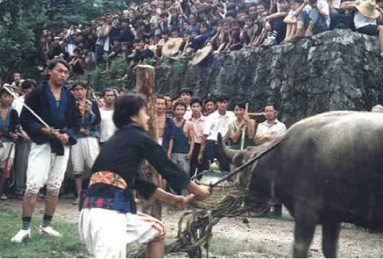 砍牛、打銅鼓是白褲瑤為死者舉行葬禮的儀式,整個(gè)葬禮悲壯、肅穆,祭祀場(chǎng)面氣氛凝重莊嚴(yán),這種傳統(tǒng)送喪習(xí)俗,既是表達(dá)遺屬對(duì)死者的悼念,也是一項(xiàng)眾人共同的祭祖活動(dòng),銅鼓、皮鼓,是葬禮活動(dòng)的主要打擊樂器。