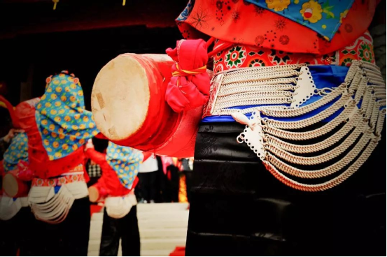 ▲腰巾繡花帶,刺繡紋樣植物紋、幾何紋居多,基本都是黑底彩繡,色彩穩(wěn)重大方。
