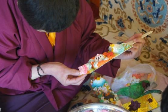 酥油花是藏族傳統(tǒng)工藝的古老藝術(shù)之一,又稱油塑藝術(shù),是以酥油為材料而制成的特殊雕塑作品。每年冬天,由手工藝人們將酥油切成薄片,加上冷水,攪拌均勻,加入各種礦物顏料后雕塑而成。每年藏歷新年的一月十五日都會(huì)舉行盛大的酥油花藝術(shù)作品展覽活動(dòng)。