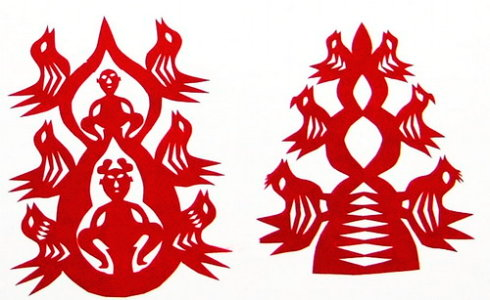 和林格爾剪紙有著悠久的發(fā)展歷程,世世代代在這里生活的北方游牧民族開創(chuàng)了這里的剪紙藝術(shù)。和林格爾歷史上有眾多民族在這塊土地上生息繁衍,是北方游牧民族和中原農(nóng)耕民族交匯融合的重要地區(qū)之一,先后有土方、鬼方、獫狁、樓煩、林胡、匈奴、突厥、鮮卑、烏桓、契丹、女真、蒙古、滿等北方民族駐牧;后又有清代著名的“走西口”——清朝向西北用兵,在和林格爾開辟驛站,大力開發(fā)西部,山西、陜西等地農(nóng)民紛紛來此開荒,在此定居,農(nóng)耕文化與草原文化再一次融合。這些為和林格爾剪紙的創(chuàng)作提供了肥沃的土壤;繼而逐漸形成了和林格爾剪紙獨(dú)具特色的藝術(shù)形態(tài)。目前,和林格爾縣 13 個(gè)鄉(xiāng)鎮(zhèn),4 萬農(nóng)戶,僅有 18 萬多人口的和林格爾縣擁有業(yè)余剪紙人員超過 5000 人,年齡最大的近百歲,最小的僅有七八歲。