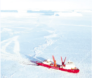 “雪龍”號(hào)是中國(guó)最大的極地考察船,也是中國(guó)唯一能在極地破冰前行的船只?!把垺贝秃?,能以1.5節(jié)航速連續(xù)沖破1.2米厚的冰層(含0.2米雪)。簡(jiǎn)單來(lái)說(shuō),“雪龍”號(hào)船底有許多密封艙,破冰時(shí)先把后部的密封艙用幾千噸的海水灌滿;這樣船頭自然翹起,壓騎至冰面之上;然后再把前部的密封艙灌滿海水,后部的海水排出,利用船體前部的巨大壓強(qiáng),把堅(jiān)冰壓裂破開(kāi)。