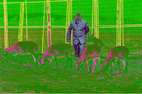 在可可西里國家級自然保護區(qū)索南達杰保護站,站長趙新錄與藏羚羊在一起(9月28日攝)。新華社記者 李占軼 攝