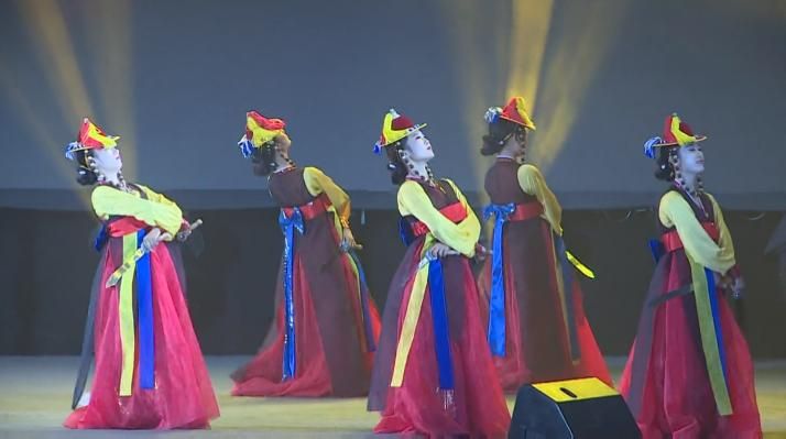 關(guān)于刀舞的由來,也有一段令人神往的傳說。新羅國(guó)有位名叫黃昌郎的壯士,7歲的時(shí)候就能揮舞長(zhǎng)劍表演,氣勢(shì)如虹。他一人來到百濟(jì)市舞劍,觀眾圍得里三層外三層,深深為他的劍術(shù)所吸引。百濟(jì)王聽說以后,召黃昌郎入宮表演。黃昌郎借舞劍之機(jī),刺殺百濟(jì)王,結(jié)果最終被人殺害。新羅國(guó)的人民為了緬懷黃昌郎的義舉,面帶假面具,手持折半的刀,照他從前表演的舞姿跳舞。刀舞于是由此而來。刀舞與劍舞一樣,雄壯、勇猛、躍動(dòng)的舞姿貫穿舞蹈的全過程。刀舞有很強(qiáng)的隨意性,沒有統(tǒng)一的套路,舞者的基本動(dòng)作合著打擊樂節(jié)奏可隨意發(fā)揮。舞蹈反映了朝鮮族人民勇敢、大膽、智慧、樂觀的民族氣概。舞蹈姿勢(shì)剛?cè)嵯酀?jì),激舒并存,急緩相容,像疾風(fēng)般的向前沖,左右猛刺,輕快猛移等動(dòng)作,“喀嚓”、“喀嚓”的揮刀聲以及浪漫的舞態(tài),給人以強(qiáng)烈的號(hào)召感,體現(xiàn)了朝鮮族舞蹈的高超技藝。