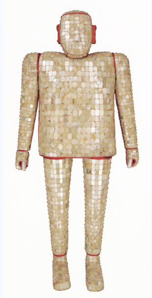 江蘇徐州博物館所藏國寶金縷玉衣在徐州獅子山楚王陵出土,這件金縷玉衣目前有很多中國之最:年代最早,距今超過2000多年,推斷墓主人是第三代楚王劉戊;玉片最多,玉衣長174厘米、寬68厘米,用1576克金絲連綴起4248塊大小不等的玉片;玉質(zhì)最好,玉衣全部由新疆和田白玉、青玉組成,溫潤晶瑩;工藝最精,玉衣設(shè)計精巧、做工細(xì)致,拼合得天衣無縫,是曠世難得的藝術(shù)瑰寶。