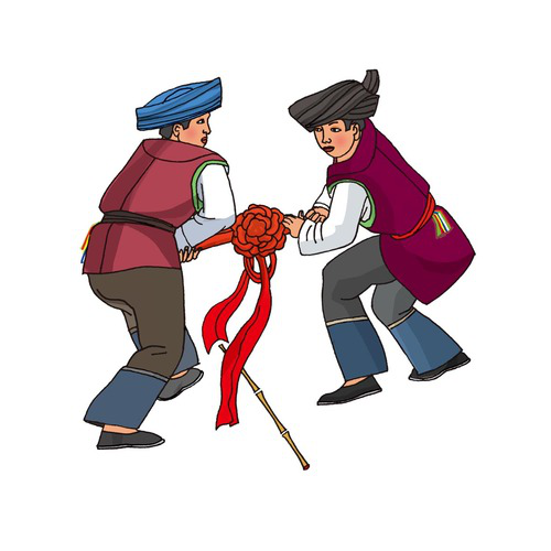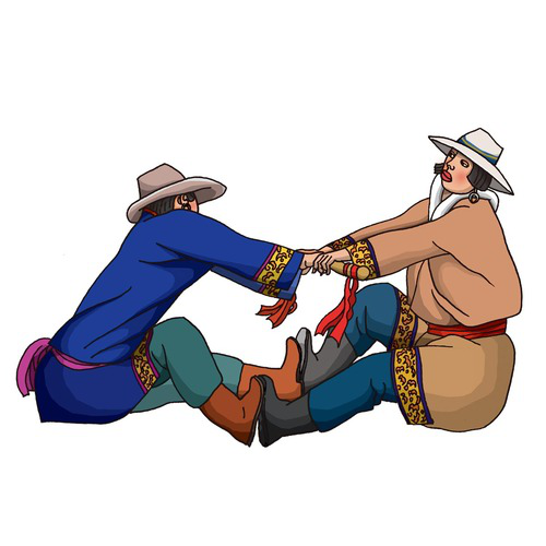裕固族(拉棍):裕固族有12297人,聚居在甘肅省肅南裕固族自治縣和酒泉縣黃泥堡等地。裕固族傳統(tǒng)體育項目主要有摔跤、賽馬、射箭、拔棍、牛背角力、拉爬牛、毛槍舞、頂杠子等。