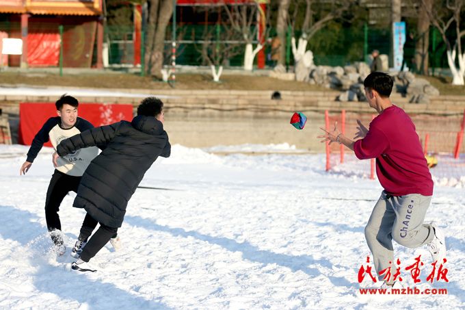 為了更好地將冰雪趣味健身賽事、冰雪健身體驗(yàn)活動(dòng)等送到全市各族群眾身邊,北京市民族傳統(tǒng)體育協(xié)會創(chuàng)造性地將綾球、高腳競速及板鞋競速等少數(shù)民族傳統(tǒng)體育項(xiàng)目與冬季冰雪相結(jié)合,整理、發(fā)展了雪地綾球、雪地高腳、雪地板鞋等項(xiàng)目,在現(xiàn)場進(jìn)行展示交流,吸引大批群眾熱情參與。