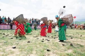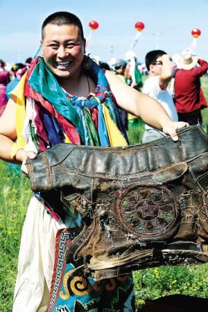 當然,后來那達慕增加了許多新項目,比如賽駱駝、提水、縫蒙古袍扣子、撿牛糞、打斷牛骨比賽、蒙古象棋比賽、沙嘎(羊拐)比賽等。在北京舉辦的那達慕里,還融入了現(xiàn)代三大球類比賽項目,為了集體參與,增加了拔河比賽、扔沙包、服飾比賽、兒童說蒙古語比賽、兒童唱歌比賽等。