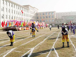 時(shí)分時(shí)滾踢行頭?!疤咝蓄^”也是春季滿族同胞喜愛(ài)的一種娛樂(lè)活動(dòng),始于滿族人的祖先肅慎人?!靶蓄^”是一種用皮革或布料縫制的球。“踢行頭”比賽一般會(huì)選在開(kāi)闊地,踢時(shí)劃三道橫線為界,設(shè)三名裁判,每人各執(zhí)一根木桿,立于線上,雙方任何一方將“行頭”踢入線內(nèi),裁判手中木桿即刻落下,判為得分,得分多者為勝方。開(kāi)賽時(shí)雙方列隊(duì)于線上,一方開(kāi)球,另一方則橫立于線上阻擋,如同現(xiàn)在踢足球罰點(diǎn)球的“人墻”。雙方你撞我擋,“戰(zhàn)斗”相當(dāng)激烈。比賽時(shí),雙方還在場(chǎng)地旁各備牛、羊、粘糕、豆包等食品。比賽結(jié)束后,負(fù)方要將酒席象征性地送給勝方,然后雙方一起飲酒、嬉笑、歌舞。這種娛樂(lè)活動(dòng)很有趣,吸引了眾人的參與,可謂是:“時(shí)分時(shí)滾令人迷,這手拋來(lái)那腳踢。攻守爭(zhēng)奪揭曉處,行頭又入得分區(qū)!”