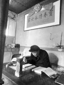 河西寶卷國家級(jí)傳承人代興位在家抄寫寶卷。