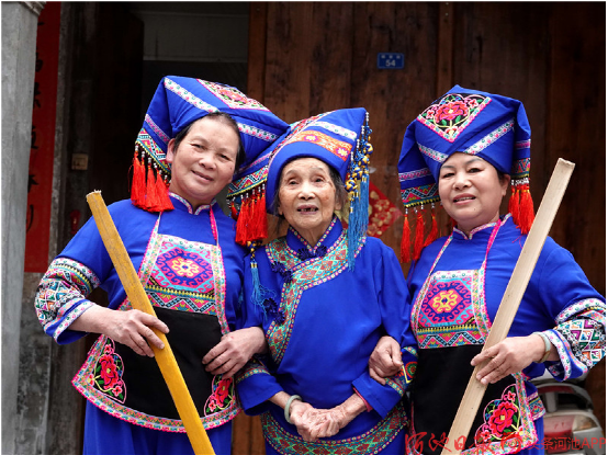 都安縣500名群眾歡聚一堂,打起扁擔(dān),喜迎“三月三”。