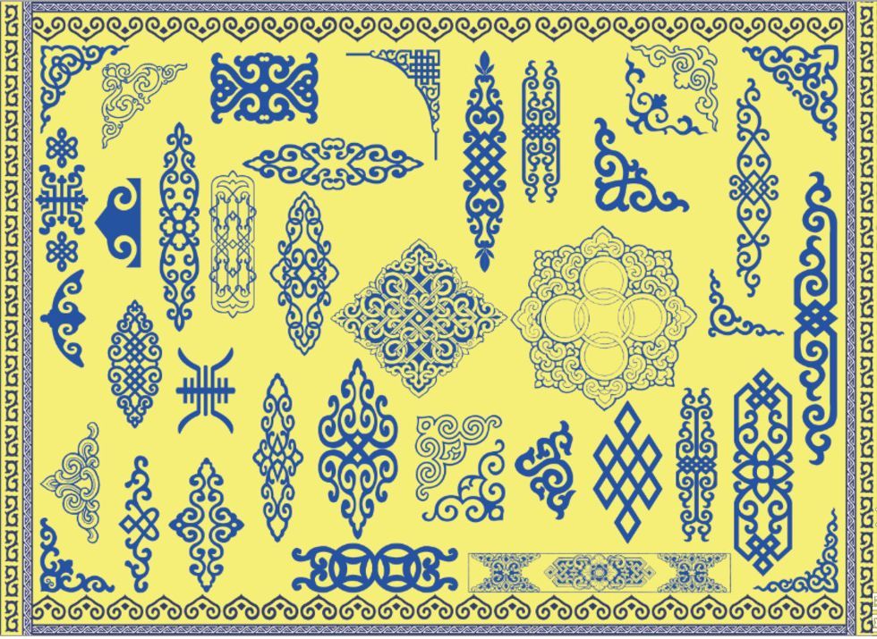 傳統(tǒng)的氈繡工藝品包括吉祥圖案、花紋圖案、五畜圖案、鮮花飛鳥(niǎo)、蒙古包門、氈包帡幪、馬鞍屜、氈靴(氈襪)、坐墊、各種繡花氈囊、拾羔袋、駝鞍等。