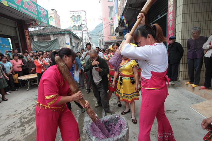 這一節(jié)期,各家各戶都準備“糍那”、“迎霜粽”等各種特色食品,招待親朋好友,人們以有朋友到家宴飲為榮。