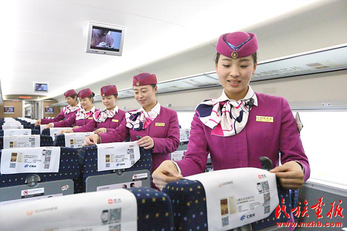 擔(dān)任貴陽至昆明高鐵值乘任務(wù)的“動(dòng)妹”們進(jìn)行系列安全演練和培訓(xùn),確保為旅客提供優(yōu)質(zhì)服務(wù)(張貴忠 攝影)