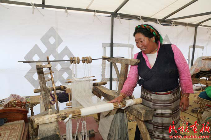 阿妮做氆氌編織已有13年了,村里的手工藝制作合作社為她提供了平臺(黃若天 攝影)