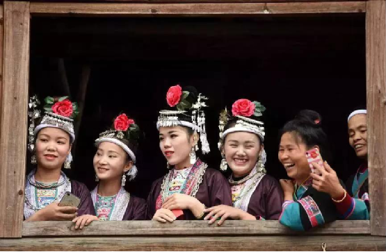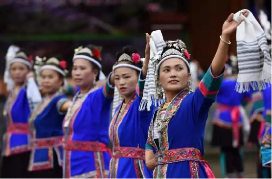 侗族婦女在表演民族舞蹈
