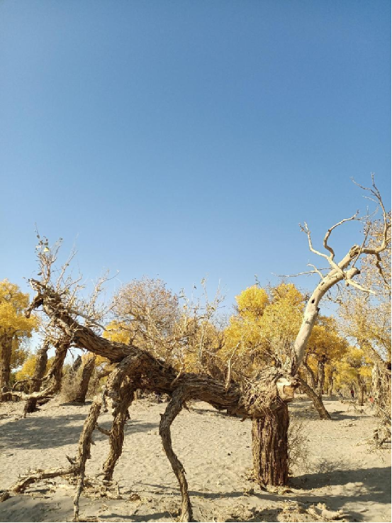 胡楊是多變的,春夏為綠色,深秋為黃色,冬天為紅色。胡楊又是堅強的樹種,有“生而千年不死,死而千年不倒,倒而千年不朽”之說。全國有多處胡楊林區(qū),但最為美麗,最為壯觀,胡楊林最為聚集的地方就是額濟納旗胡楊林了。