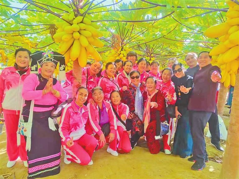 通過充分發(fā)掘古佛寺、民族文化廣場、白龍箐、榕樹王等獨特自然資源,那京群眾主動投工投勞10000余人次,大干基礎(chǔ)設(shè)施建設(shè),打造鄉(xiāng)村旅游景觀景致,修建道路7500米、景觀池16個,栽種景觀苗木5萬余株,修建棧道2100米。如今,那京參天古樹矗立、孔雀悠閑散步、進組道路通達,開始迎來了四面八方的游客。這個僅有37戶人家的村寨開起10家農(nóng)家樂,2019年旅游收入已超過傳統(tǒng)農(nóng)業(yè)產(chǎn)業(yè)收入,達360余萬元。