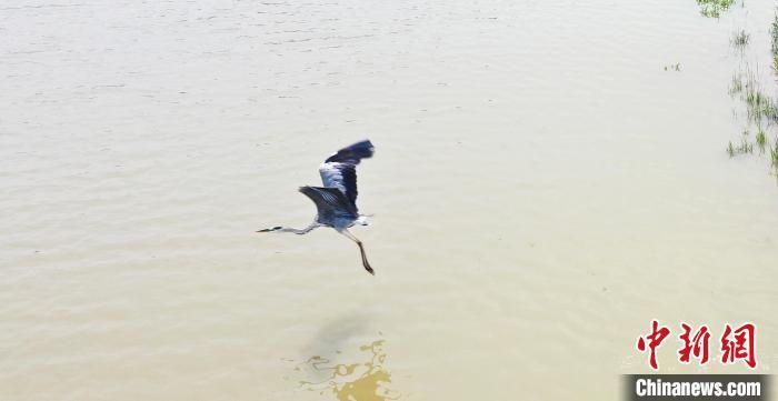 鳥兒在南宮湖濕地公園飛翔?!√锿?攝