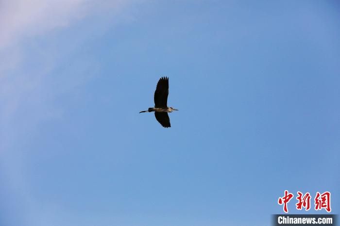 鳥兒在南宮湖濕地公園飛翔。 田威 攝