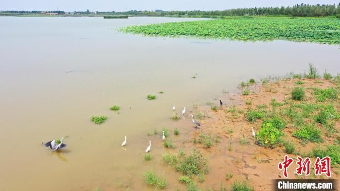盛夏時(shí)節(jié),雨過(guò)天晴,美麗的南宮湖水波蕩漾,蒼鷺、白鷺、綠頭鴨等鳥類在此翔集,棲息覓食。河北省南宮市的南宮湖濕地公園,擁有3000多畝水面和52公里內(nèi)外環(huán)水系,是河北南部依傍縣城最大的人工湖。近年,當(dāng)?shù)貙?shí)施南宮湖水生態(tài)修復(fù)工程,昔日“藏污納垢,蚊蠅亂飛”的舊坑塘成為水清、岸綠、景美的生態(tài)湖、景觀湖。