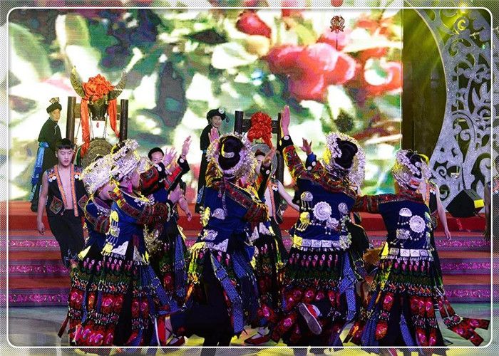 中國苗族網訊 2019年1月19日,由貴州省社科聯(lián)、貴州民族大學指導,貴州省苗學會主辦,貴陽市苗學會、六盤水市苗學會、安順市苗學會、畢節(jié)市苗學會、銅仁市苗學會、黔西南州苗學會、黔東南州苗學會、黔南州苗學會、貴安新區(qū)苗學會、多彩貴州城建設經營有限公司共同協(xié)辦的“迎新春-蝶韻楓彩鼓聲來”2019春節(jié)聯(lián)歡晚會,在貴州省貴陽市“多彩貴州城”展示中心隆重舉辦。貴州省9個州市及貴安新區(qū)苗族、布依族、侗族、土家族、彝族、仡佬族、水族、回族、白族、瑤族、壯族、毛南族、蒙古族、仫佬族、羌族、滿族等17個少數(shù)民族載歌載舞歌盛世,歡天喜地迎新春。 應邀出席春晚的領導嘉賓有貴州省人大常委會原副主任、省苗學會老會長楊光林,以及貴州省人大常委會,貴州省社科聯(lián),貴州省民政廳,貴州省政協(xié),貴州民大,貴州省政協(xié),貴州省文化和旅游廳,貴州省總工會,貴州省文聯(lián)、貴州省人大、省委宣傳部、省民政廳,民宗委,社科聯(lián),貴州省八大民族學會的相關領導等應邀出席并觀看演出。 春晚得到了貴州省委宣傳部領導關心,省委常委、省委宣傳部慕德貴部長對晚會專門作出重要批示,要求把春晚打造成一臺“思想性、藝術性、觀賞性統(tǒng)一的文藝晚會,豐富春節(jié)期間群眾性精神文化生活,營造歡樂、喜慶、團結、祥和的節(jié)日氛圍”。 晚會緊扣“同心共筑中國夢,中華民族一家親”主題,圍繞共同團結奮斗、共同繁榮發(fā)展主題,繼承和弘揚中華民族優(yōu)秀傳統(tǒng)文化,積極展示貴州少數(shù)民族同胞改革開放40周年來翻天覆地的新變化,用少數(shù)民族原生態(tài)歌舞形式歌頌黨、歌頌祖國、歌頌民族大團結。春晚節(jié)目,由貴州省各州市國家非遺保護節(jié)目、在中央春晚節(jié)目,由貴州省各州市國家非遺保護節(jié)目、在中央級、省市級比賽中獲獎的各民族原生態(tài)蘆笙舞、錦雞舞、銅鼓舞、板凳舞,苗族飛歌、古歌、大歌、情歌、絕技;民族盛裝走秀;非遺文化展示等26個節(jié)目組成。 晚會由240位貴州各地苗族演員,50位苗族、布依族、侗族、仡佬族、彝族、土家族、回族等17個少數(shù)民族演員,在主持人的開場白介紹中,手持燈花、衣著盛裝在鼓點笙曲中步入會場。 接著,被國內外譽為“東方迪斯科”的黔東南州臺江《反排木鼓舞》拉開笙鼓迎春的序幕,雷山國家級非遺節(jié)目《掌坳銅鼓舞》、《錦雞舞》,貴陽市花溪區(qū)《花鼓舞》、貴安新區(qū)原生態(tài)蘆笙舞《花坡韻》、黔南州《鼓龍鼓虎-長衫龍》、兒童舞蹈《跺月亮》、畢節(jié)市納雍縣蘆笙舞《滾山珠》、凱里原生態(tài)合唱《春之歌》、安順留守兒童合唱團《又見桃花開》、金竹樂隊蘆笙組合《酒歌》、銅仁市絕技《紙上飛仙》、黔西南州《板凳舞》等,一個個節(jié)目精彩絕倫、美輪美奐,舞出少數(shù)民族同胞“美起來、笑起來、富起來、強起來”的精神風貌、音容笑貌。最后,貴州省17個世居少數(shù)民族240名演員齊唱《愛我中華》,在“五十六個民族五十六朵花,五十六個兄弟姐妹是一家”的歌聲中把整臺晚會推向高潮,拉下帷幕。 此次春晚民族文化濃厚、明星歌手薈萃、演員陣容龐 此次春晚民族文化濃厚、明星歌手薈萃、演員陣容龐大、節(jié)目精彩絕倫。這些節(jié)目,涵蓋了東部方言、中部方言和西部方言各民族支系。遍及黔東南州、黔西南州、黔南州、貴陽市、安順市、畢節(jié)市、六盤水市、銅仁市和貴安新區(qū)。老藝術家榜香、青年歌手阿幼朵、潘興周、雷艷、楊一方、阿娜丹、歐桑、楊佳茜、楊祖桃、楊思雨、楊廷勇、吳敏成、阿蕾倩、余秋陽、阿依三姐妹、谷阿斯組合、阿依山娃組合等20多名少數(shù)民族歌星紛紛登臺獻藝,演員達300余人。 貴州省人大常委會原副主任、貴州省苗學會老會長楊光林說,春晚的舉辦,有利于提高民族同胞的戰(zhàn)斗力、凝聚力、感召力!春晚牢牢把握了“百姓富、生態(tài)美”兩條底線,通過晚會形式,吹響了少數(shù)民族同胞在黨中央和貴州省委、省政府的堅強領導下,致力于決戰(zhàn)脫貧攻堅,決勝同步小康、實現(xiàn)鄉(xiāng)村振興的號角。是號召大家參與國家實施的“鄉(xiāng)村振興、脫貧攻堅”任務,努力實現(xiàn)貴州人民2020年和全國人民同步實現(xiàn)小康及全國人民正在努力實現(xiàn)的“中國夢”作出貢獻的動員令! 晚會當天,春晚組委會主任、貴州省苗學會常務副會長張榮斌介紹:“迎新春-蝶韻楓彩鼓聲來”2019春節(jié)聯(lián)歡晚會,是推進貴州省委、政府明確提出的“全力打造多彩貴州民族特色文化強省”戰(zhàn)略定位的實際行動;是著力推出民族民間文化精品,提升“山地公園省,多彩貴州風”影響力和美譽度的良好平臺;是增強少數(shù)民族同胞文化自信,打造“山地公園省,多彩貴州風”的靚麗名片和文化品牌;是全省少數(shù)民族同胞新春佳節(jié)的一場文化盛宴。 參加春晚的演員百分之九十來至農村,很多來自邊遠山區(qū)。大家認為,春晚要年年辦,希望黨委政府關心支持老百姓辦自己的春晚。通過晚會,挖掘貴州少數(shù)民族優(yōu)秀傳統(tǒng)文化,特別是非遺文化。讓全國人民知道貴州、了解貴州、關心貴州,積極參與到貴州少數(shù)民族地區(qū)的脫貧攻堅