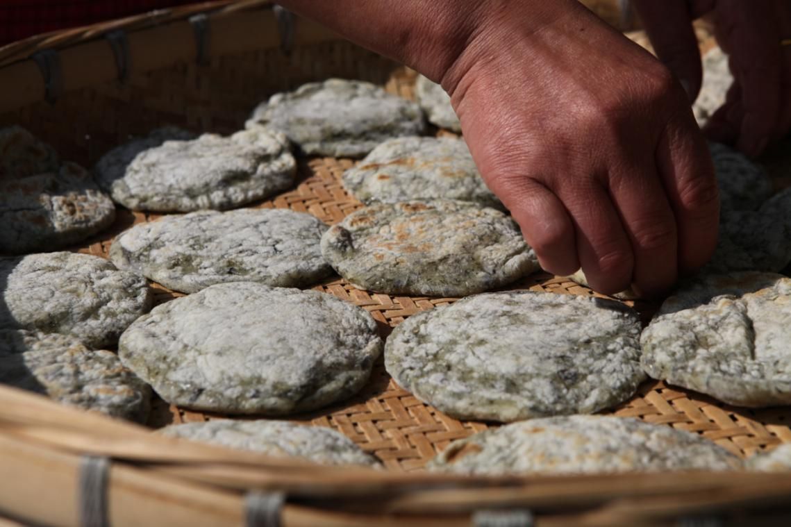 無論是面團(tuán)還是餡心,清明粑的原材料都有益身心。清洗鍋面,生起爐火,一道美食即將呈現(xiàn)。