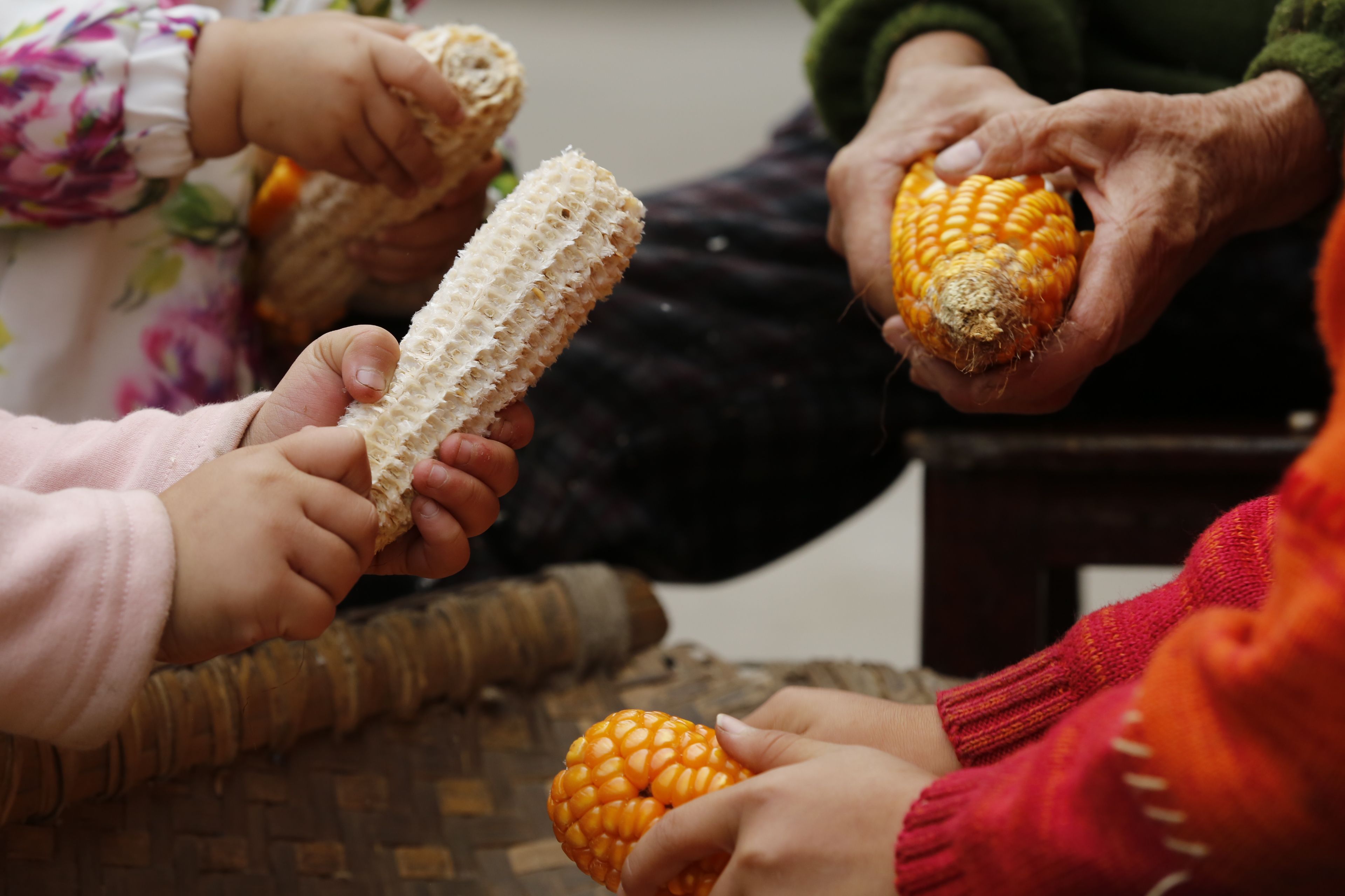 苗族老年人與兒童剝玉米3